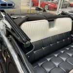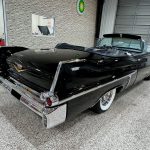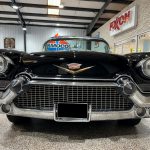 The 1957 Cadillac Series 62 Convertible is a beautifully presented fin-era American luxury car finished in black with a white power-operated convertible top and a black-and-white interior. It captures the flamboyant style of 1950s Cadillac design with dramatic tailfins, hooded headlights, chrome side trim, Dagmar bumper guards, and abundant brightwork throughout. Refurbishment work completed in the 1990s included paint, bodywork, and interior restoration, leaving the car in strong driver-quality condition with excellent vintage presence.