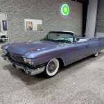 This 1960 Cadillac Eldorado Biarritz is one of the most glamorous and collectible American convertibles of the fin era, finished in rare Heather over white leather and benefiting from a comprehensive refurbishment around 2020. The high-quality repaint restores the car’s factory color beautifully, while a fresh power-operated white soft top completes the dramatic, unmistakably Cadillac presentation. Signature styling details include towering tailfins with integrated taillights, vertically stacked quad headlights, massive chrome bumpers, long sweeping body lines, and chrome wire wheels with wide whitewall tires. Few American convertibles better capture the peak of 1960s excess and elegance.
