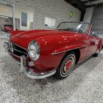 The 1960 Mercedes-Benz 190SL is a beautifully refurbished roadster finished in red with a matching body-color removable hardtop, representing one of the most elegant European sports cars of the late 1950s and early 1960s. Its timeless design features flowing fenders, delicate chrome trim, signature 190SL proportions, and a refined open-air character that continues to make the model highly collectible. Extensive work included repainting, structural repairs, interior retrimming, chrome restoration, and braking-system overhaul.