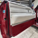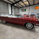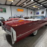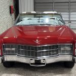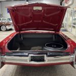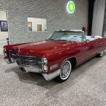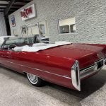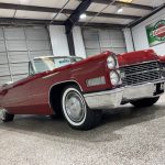 This 1966 Cadillac DeVille Convertible is finished in vibrant Flamenco Red with a replacement white power-operated soft top and matching white top boot, creating one of the most iconic and elegant color combinations available on a mid-1960s Cadillac. Exterior features include the dramatic rear tailfins, rear fender skirts, bright chrome bumpers and trim, Cadillac-crest wheel covers, and whitewall tires that give the car its unmistakable jet-age luxury appearance. Recent paintwork, trunk refinishing, and correction work have helped the body present very well, while the overall design remains one of the most recognizable expressions of full-size American open-top luxury.