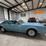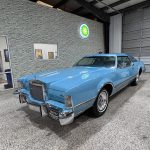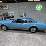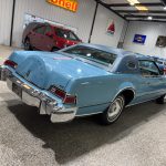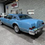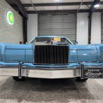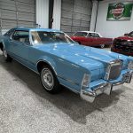 This 1975 Lincoln Continental Mark IV is a Blue Diamond Luxury Group example finished in Aqua Blue Diamond Fire Metallic with a matching Aqua Blue Normande grain Landau vinyl roof, blue pinstriping, and decorative side moldings. Exterior details include opera windows, power vent windows, cornering lights, a power-telescoping antenna, dual side mirrors, and 15-inch forged aluminum wheels, giving the car the unmistakable style and drama of the mid-1970s personal-luxury era. The coordinated color scheme is especially striking and uncommon, making this Mark IV stand out even among other Lincolns of the same generation.