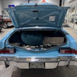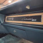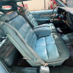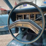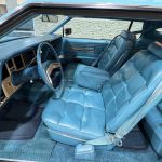 The interior is upholstered in Aqua Blue leather on the power-adjustable front seats and rear bench, accented by Light Maple woodgrain trim and matching cut-pile carpeting. Equipment includes automatic climate control, cruise control, power windows, AM/FM eight-track stereo, automatic headlight dimmer, and electronic rear defogger. The Cartier clock is non-functional, but the cabin remains spacious, well-preserved, and richly appointed. With original-owner history until 2022, literature, service records, and a highly desirable luxury-group presentation, this Mark IV offers excellent collector appeal and a true period-correct Lincoln experience.