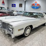 The 1978 Cadillac Eldorado Biarritz is a remarkable time-capsule example of Cadillac’s final massive front-wheel-drive personal-luxury coupe generation, finished in Cotillion White with a matching white vinyl roof and white interior. With only 1,400 miles shown, it presents as an extraordinarily preserved survivor from the final year before significant Eldorado downsizing. Exterior features include hidden headlights, fender-mounted light monitors, remote mirrors, bright chrome trim, a power antenna, and the broad, elegant stance that made these cars such iconic boulevard cruisers.