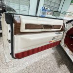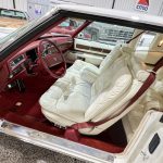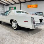 The interior features a power-adjustable front bench in White Sierra Grain leather, complemented by woodgrain trim and a long list of factory luxury equipment. Amenities include automatic climate control, cruise control, power windows, power door locks, Twilight Sentinel headlights, rear defroster, and a factory AM/FM stereo with eight-track player. This Eldorado Biarritz is an exceptional low-mileage collector car with tremendous preservation, style, and Cadillac prestige.