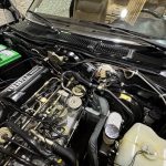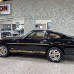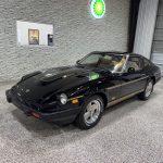 This 1983 Datsun 280ZX Turbo is a highly desirable final-year Turbo example finished in Thunder Black Metallic with gold accent stripes, one of the boldest and most recognizable color schemes offered on the S130-generation Z-car. The exterior captures the refined grand-touring look of the early 1980s with factory Turbo details including a NACA-duct hood, front spoiler, rear wiper, power antenna, and removable glass T-top panels that add open-air versatility. Correct ZX Turbo wheels and fresh BFGoodrich Radial T/A tires further reinforce the car’s period character, while the clean Carfax and original-owner history until 2023 add to its desirability.