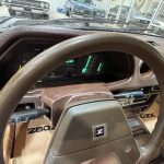 The interior features tan velour bucket seats with vinyl bolsters, matching door panels, power windows, power locks, rear defroster, automatic climate control, and cruise control. The dashboard is especially interesting, with digital instrumentation, a bar-graph tachometer, quartz clock, and auxiliary gauges for boost, oil temperature, and oil pressure. The dashboard is cracked beneath a protective overlay, and the factory cassette stereo is non-functional, but otherwise the cabin presents honestly and remains a highly attractive space. As one of the final Datsun-badged Z-cars, this low-mileage 280ZX Turbo 5-speed offers real collector appeal, strong performance, and true 1980s Japanese grand-touring style.