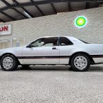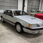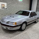 This 1987 Ford Thunderbird Turbo Coupe is a pristine low-mileage example of one of the most respected American performance coupes of the 1980s. Finished in Silver Clearcoat Metallic over Scarlet Red cloth, it combines the sharply aerodynamic styling of the period with the advanced technology and driver-focused engineering that helped it earn major acclaim when new. Exterior highlights include integrated fog lights, functional intercooler hood scoops, automatic headlights, front cornering lights, retractable antenna, dual mirrors, and Ford’s signature keyless-entry pad. The car presents very cleanly overall, with only minor cosmetic imperfections noted.